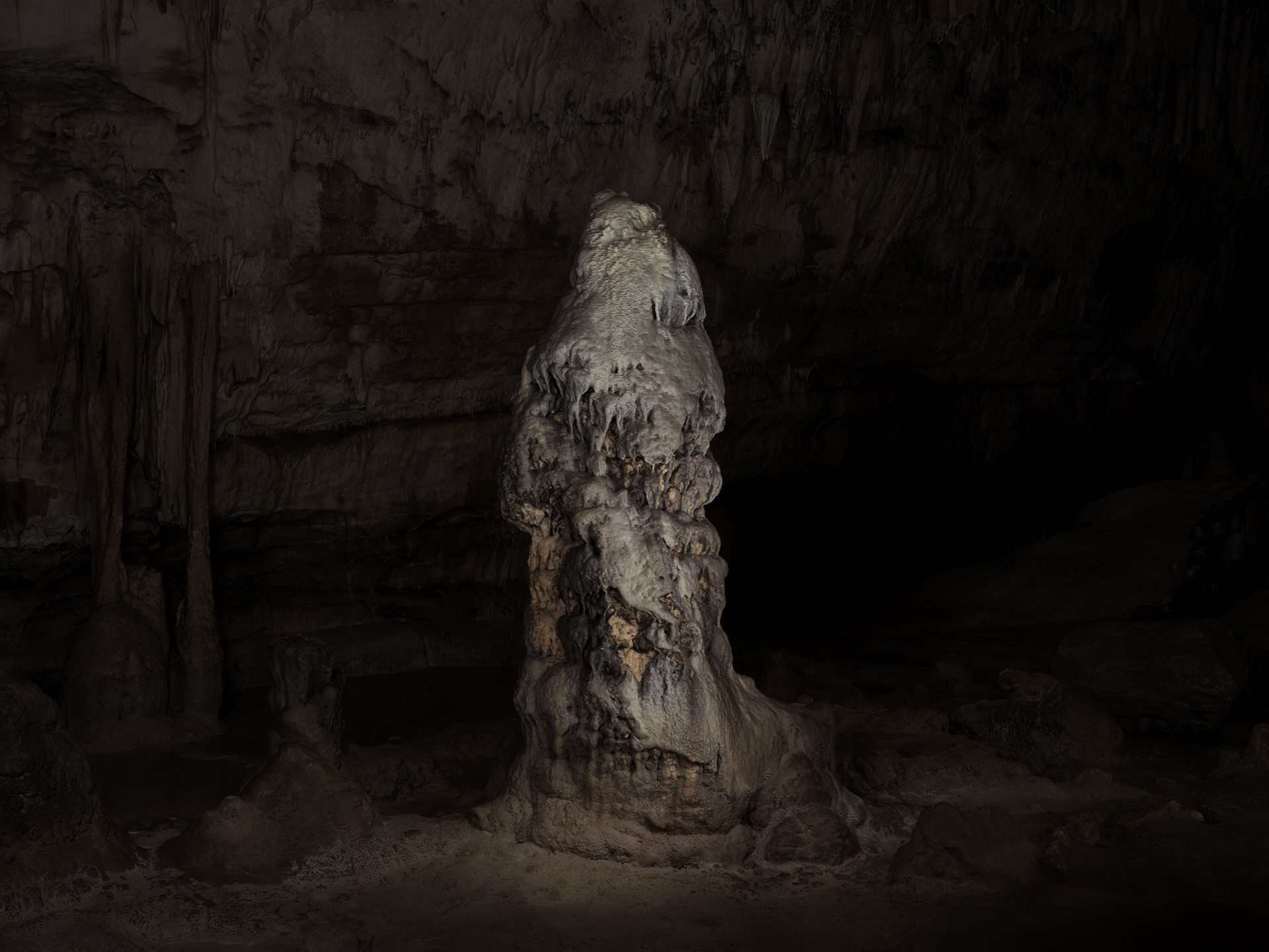 〈La main de l’enfant〉(2021–2023)에서 작가는 광물질로 가득한 동굴 깊숙한 곳을 촬영한다. 그곳의 공기는 정지해 있고, 벽은 시간의 흔적을 간직하고 있다. 긴 노출과 섬세한 조명을 통해 아녤은 침묵과 어둠 속에 남아 있는 것을 드러낸다. 빛은 공간을 다시 그리며, 돌은 환영처럼 변모한다. 각 이미지는 물질과 기억에 대한 인내심 있는, 촉각적인 만남이 된다. 이 연작은 과거가 아닌 살아 있는 현재를 말한다. 어둠 속에서 깜빡이며, 바위에 달라붙고, 한때 불꽃이 벽을 타고 흐르던 자리를 기억하는 존재를 상기시킨다.