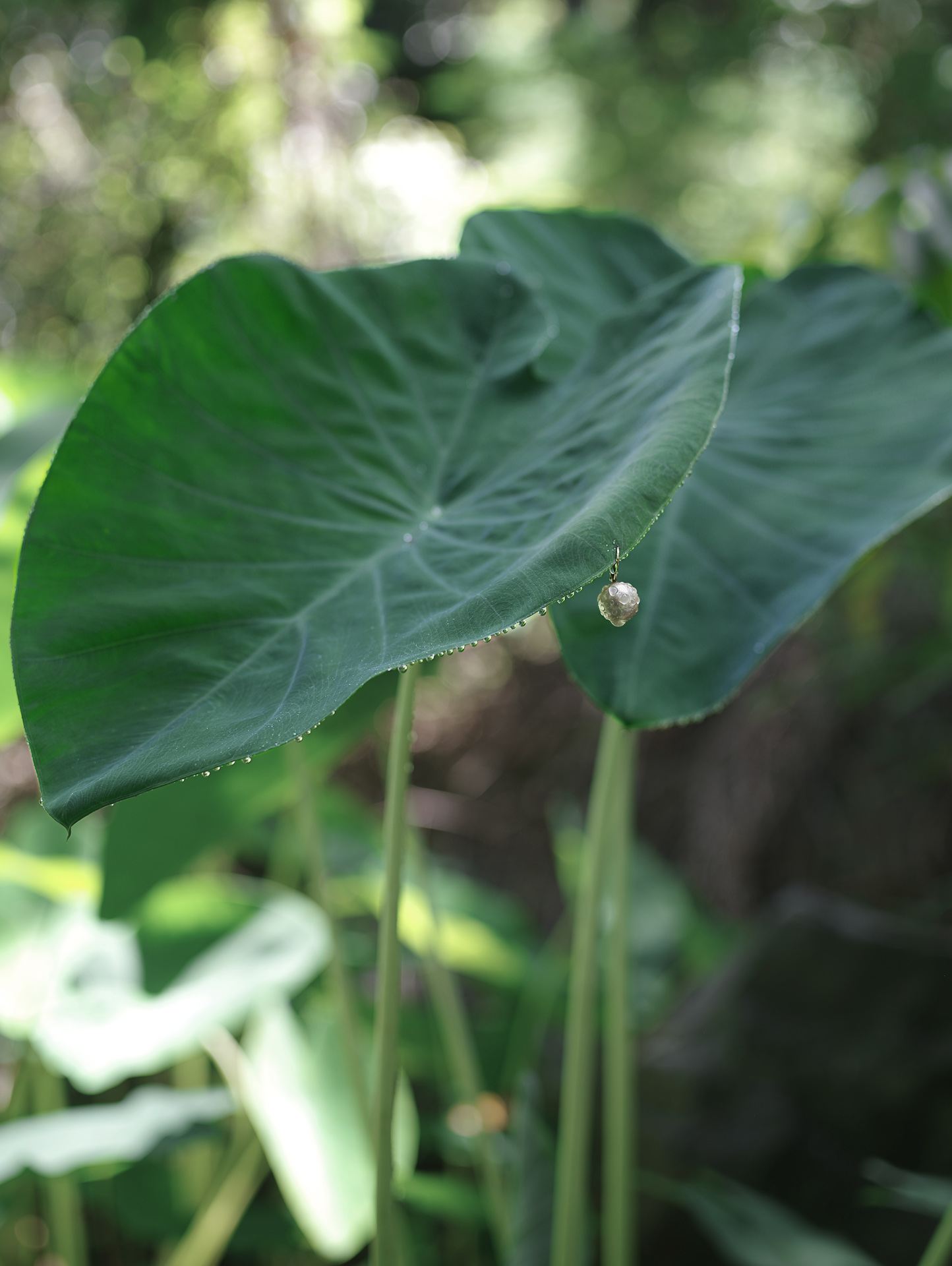 레위니옹의 과수원, 축축하고 고요한 공기 속에서 퐁텐은 타로, 망고, 바닐라, 카카오의 넓은 잎 위에 진주 한두 알을 올려둔다. 이는 마치 몸을 부드럽게 치장하듯 식물을 꾸미는 행위다. 각 잎은 하나의 피부가 되고, 진주는 땀방울이자 귀걸이, 혹은 숨결이 된다. 〈Sueur〉(2012-2022)는 특히 플랜테이션에서 일하던 여성들의 노동을 조용히 떠올리게 한다. 손과 식물 사이의 친밀함, 장식과 돌봄의 흔적을 담고 있다.
